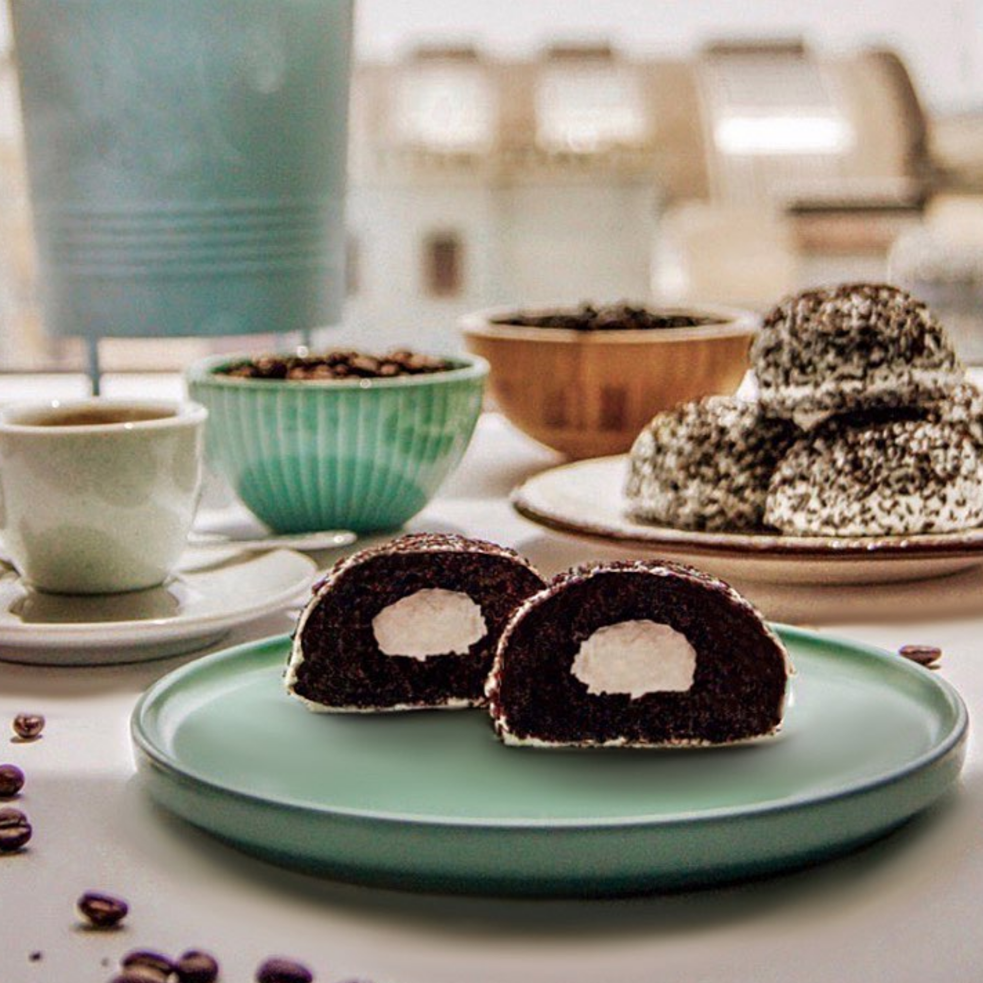 - Bánh bông tuyết mềm mịn, quyện cùng hương cà phê đậm đà, ngọt ngào.
