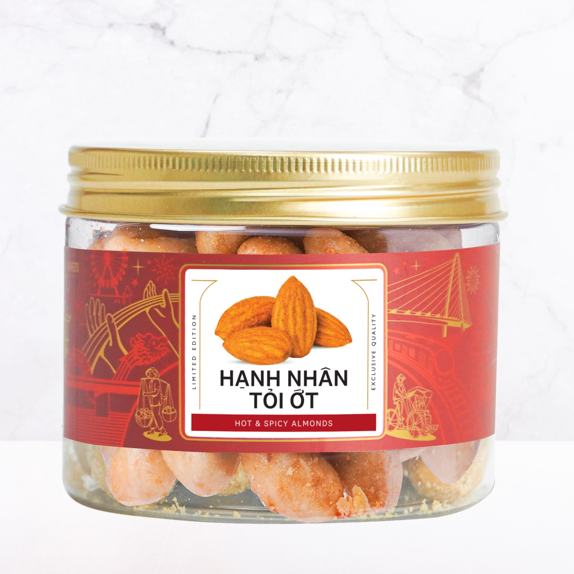 • Giòn cay đậm vị: Hạnh nhân rang giòn hòa quyện cùng tỏi thơm, ớt cay nhẹ – vị mặn ngọt cân bằng, kích thích vị giác.